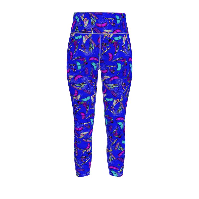 Ladies Flex Sports Lycra High Waisted Leggings Kitesurfer - Blue
