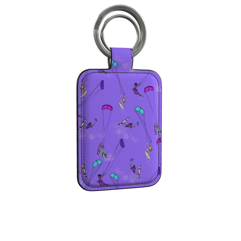 Leather Keyring Kitesurfer Girl Freestyle Jumping - Purple & Orange