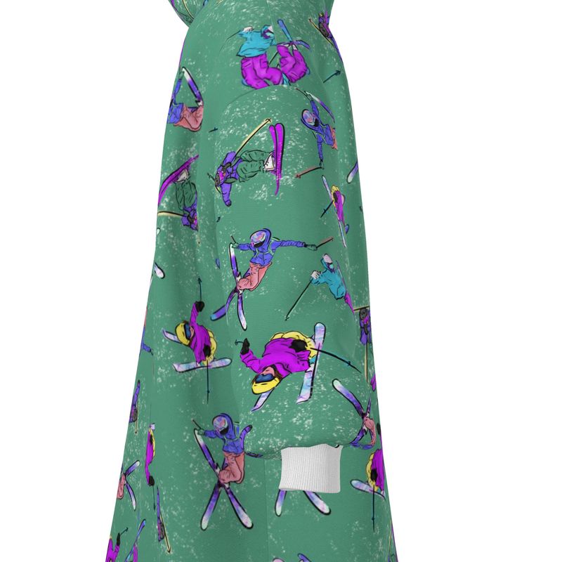 Design is made up of vibrant, abstract illustrations of real skiers in real freestyle positions.